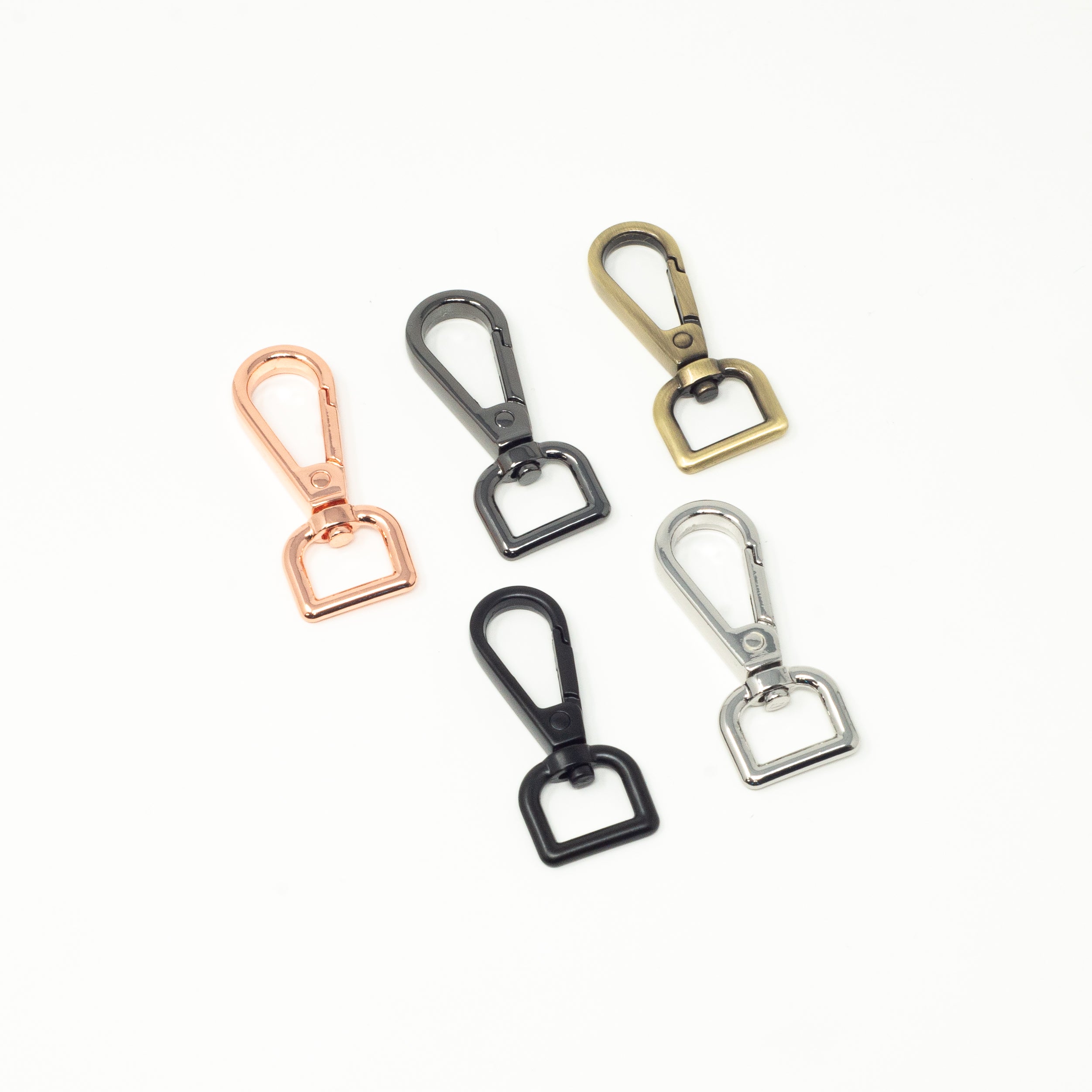 Enhance your bags with our 1/2" swivel snap hooks. Each pack includes two swivel snap hooks in your choice of five metal finishes. Attach straps with ease for a sleek, polished finish. Perfect for bag makers looking to elevate their craft.