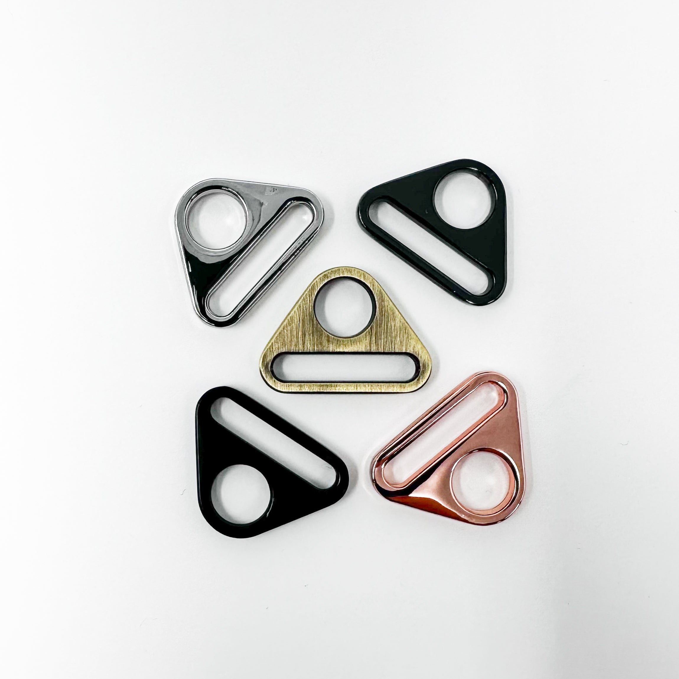 Jazz up your bag making game with these little 3/4" triangle d rings! Each pack includes two triangle d rings in your choice of five metal finishes. Attach your swivel snap hooks with ease for a sleek, polished finish.