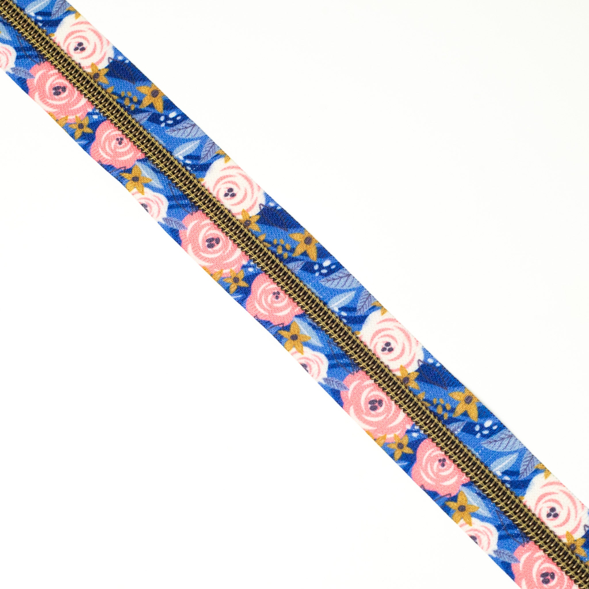 Floral Roses #5 Brass Nylon Coil Zipper Tape