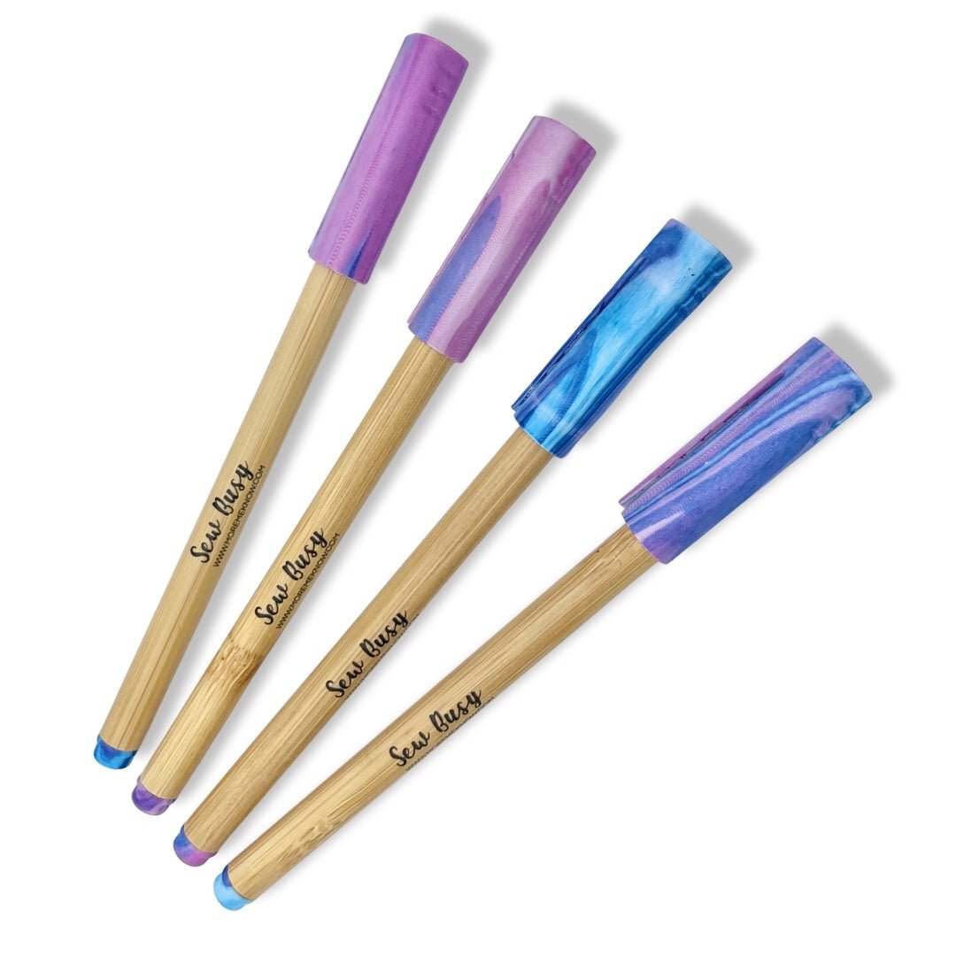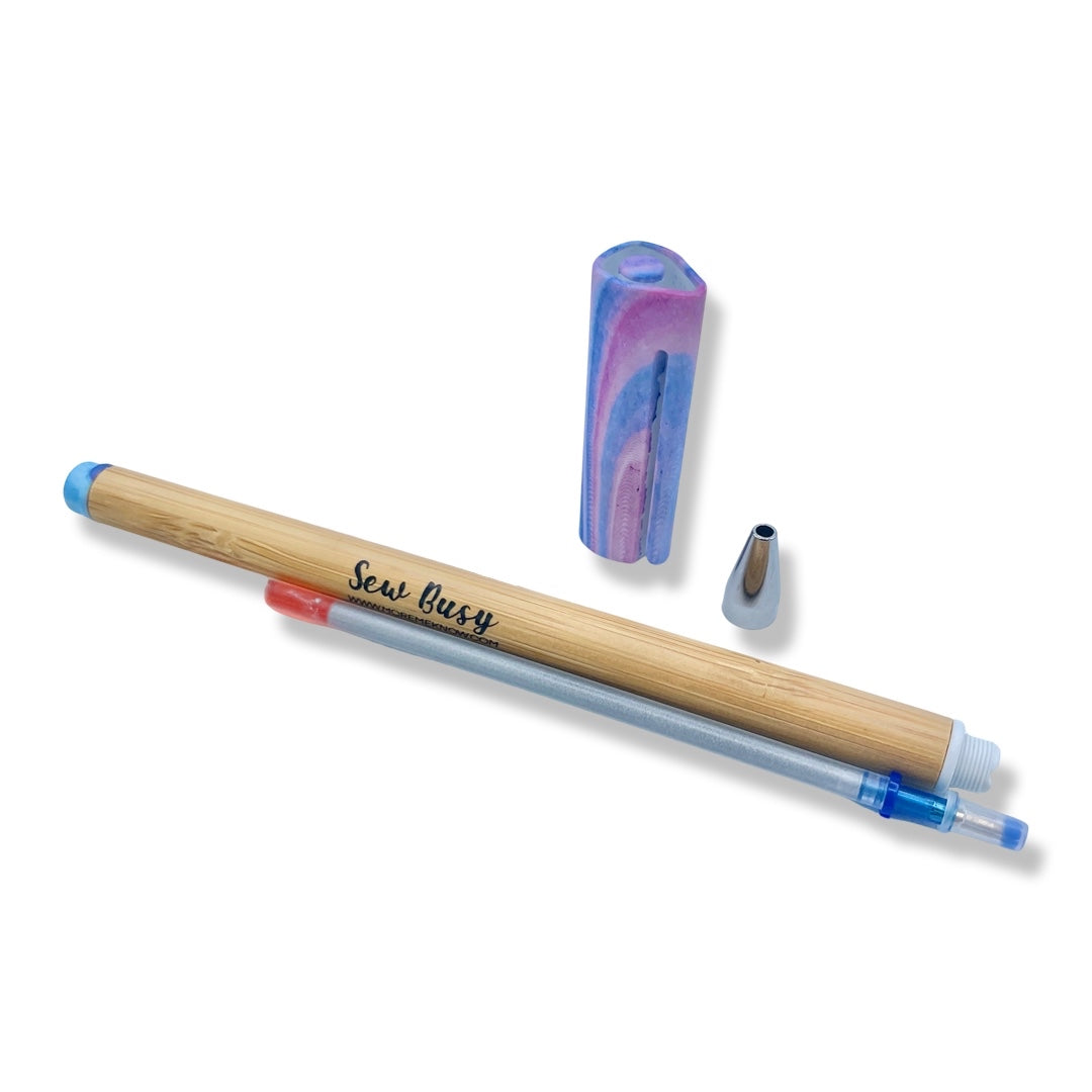 These silver ink marking pens leave a very visible silver mark on vinyl or leather and make your lines easy to find. It easily rubs off with water when it is no longer needed. Click secure cap with a faux bamboo exterior. Please note each pen cap colour will vary from each pen.
