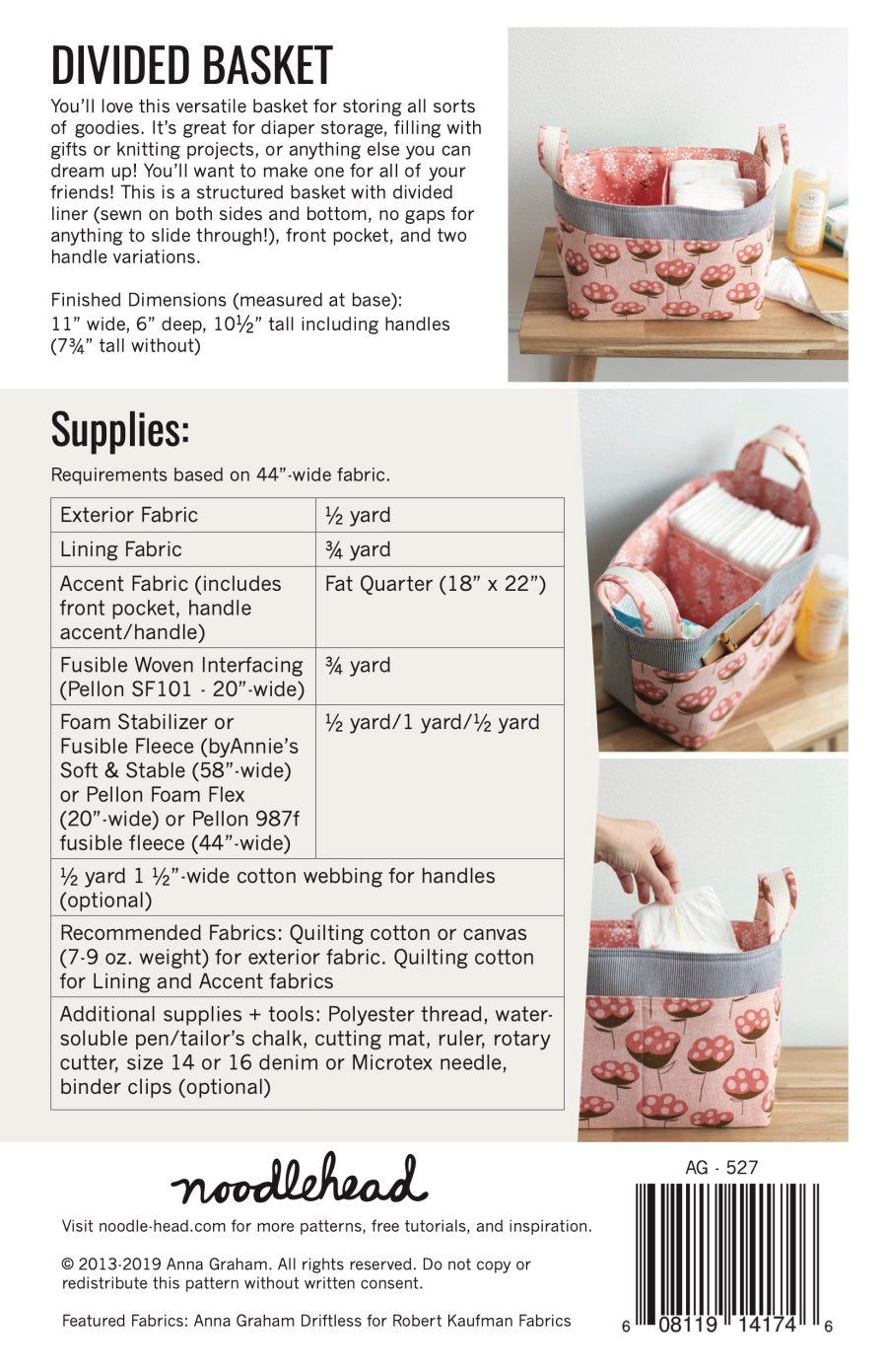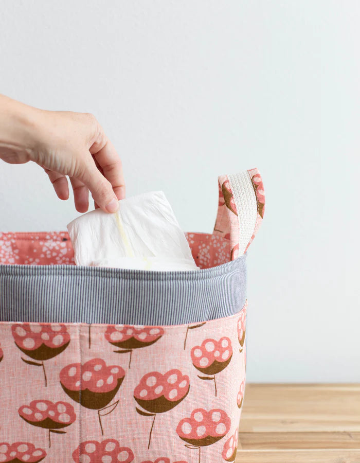 You will receive a instruction booklet with step-by-step instructions and professional illustrations, pattern sheet with full-size pattern pieces, additionally, rotary cutting instructions/measurements also included for all pattern pieces (just cut and sew, no need to cut out pattern pieces) if you prefer that method, all tucked into a resealable poly bag. You'll love this versatile pattern, a great basket for storing all sorts of goodies. It's great for diaper storage, filling with gifts and knitting projects, or anything else you can dream up! You'll want to make one for all of your friends.