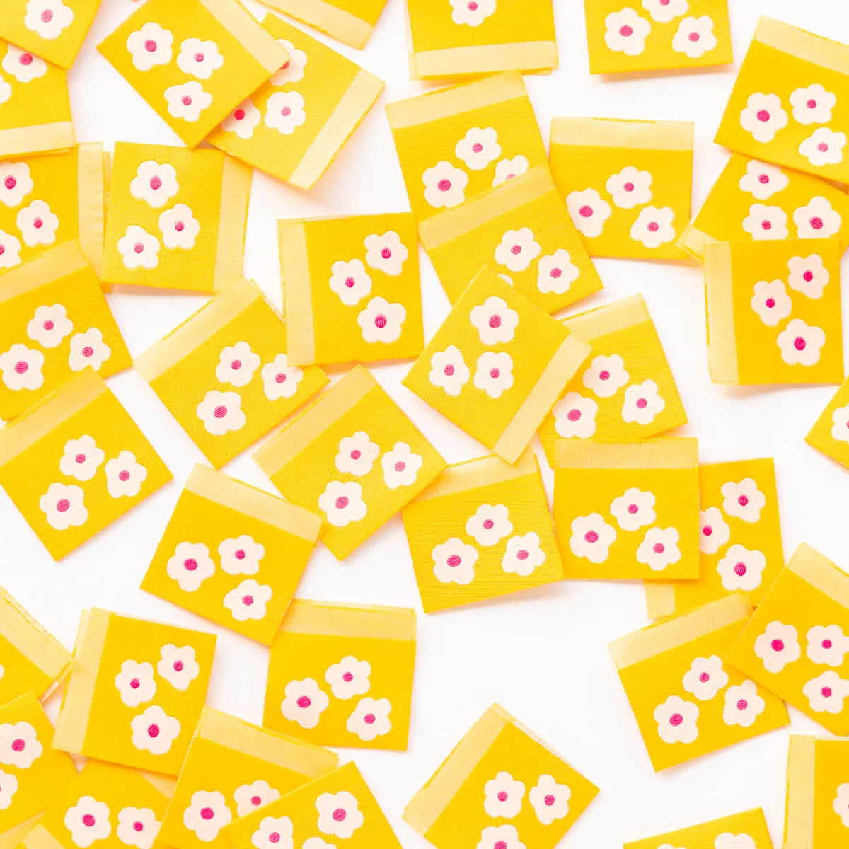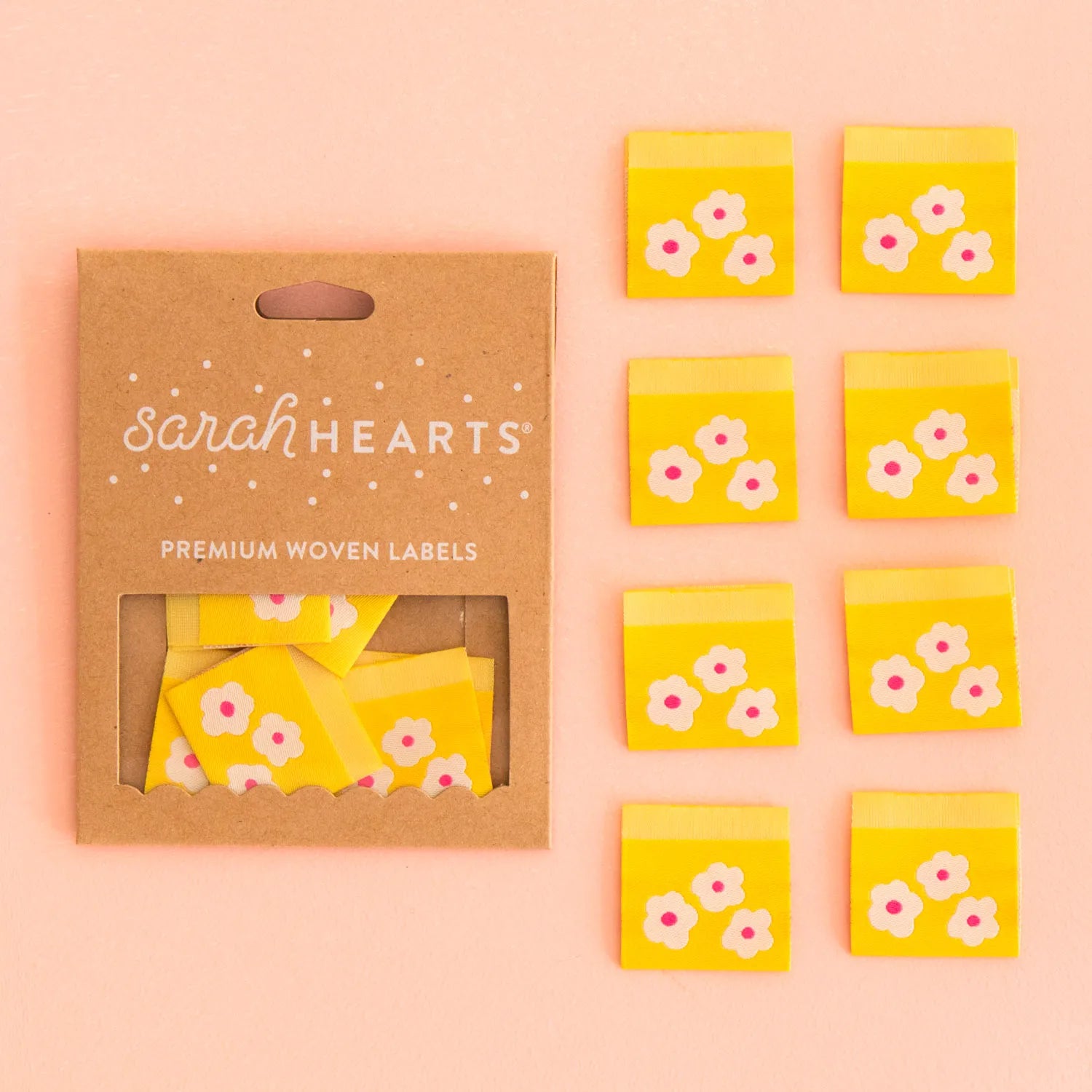 Never too many flowers! Add three cute little daisies to any garment or sewing project with these woven labels that match oh-so-perfectly to all the fabric in the Sarah Hearts. The high-quality woven labels are fully washable and can handle the heat of the dryer.