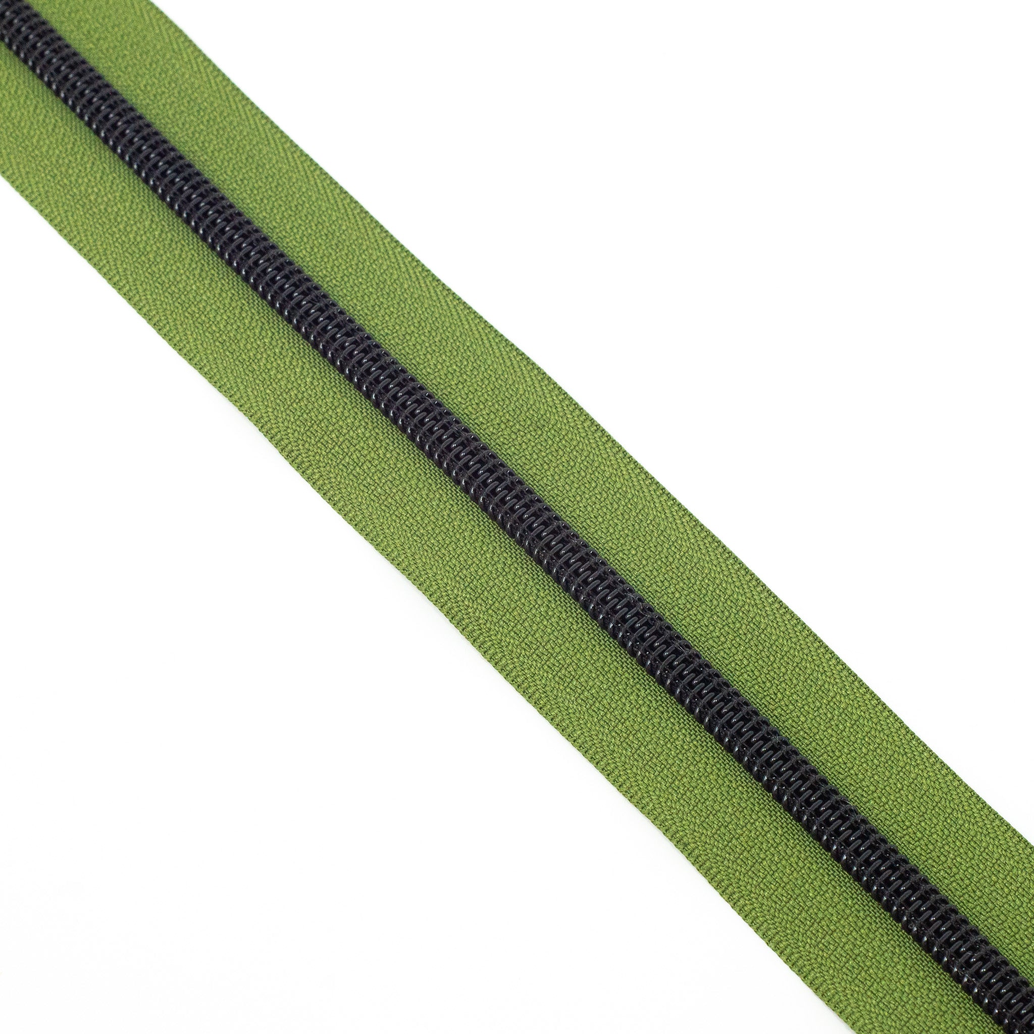 Moss size #5 black nylon coil zipper tape. Each quantity will be pre-cut to 3 metres in length. Multiple quantities of the same length will not be cut in 1 continuous piece. Our zipper tapes have the appearance of metal look teeth but are 100% nylon.