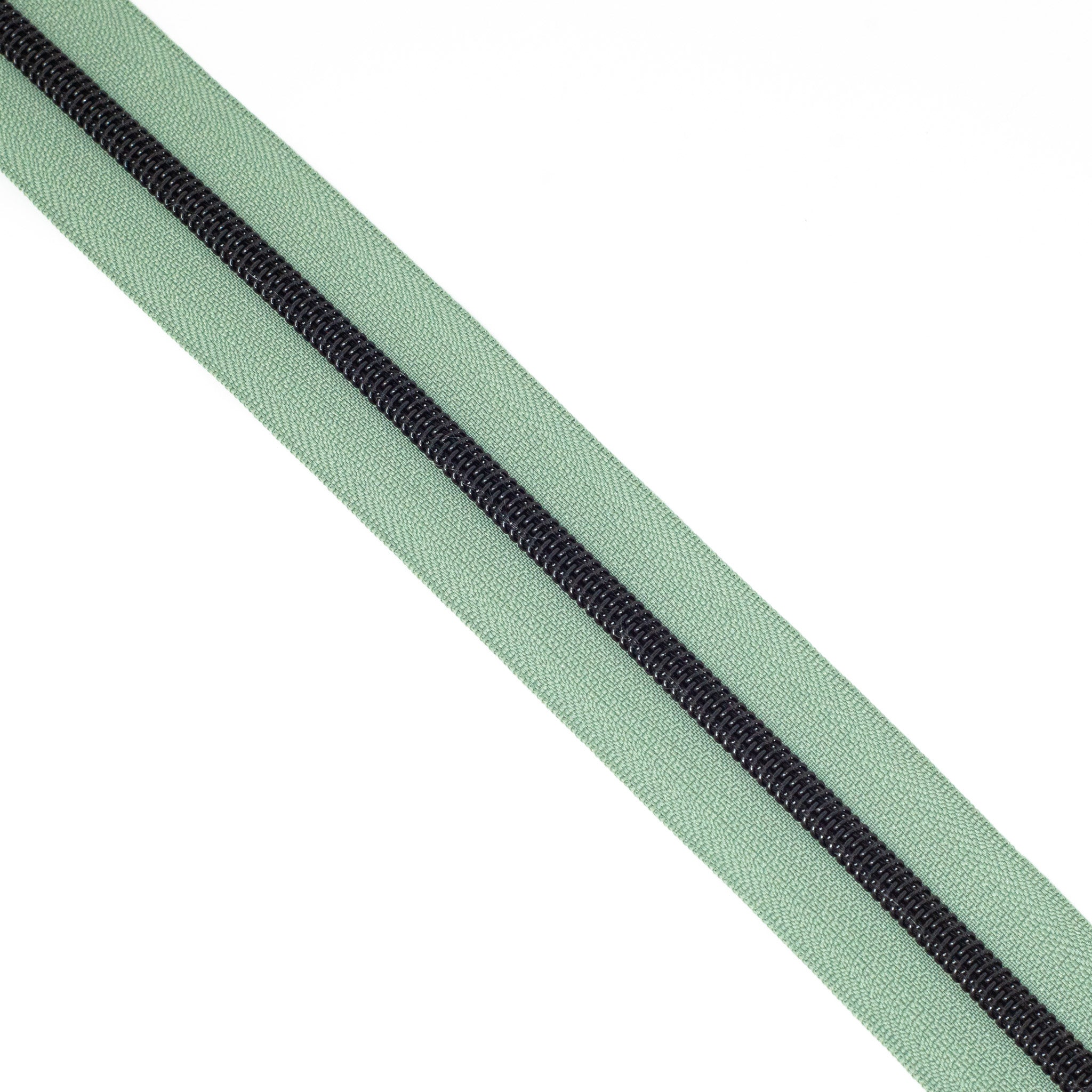 Sage size #5 black nylon coil zipper tape. Each quantity will be pre-cut to 3 metres in length. Multiple quantities of the same length will not be cut in 1 continuous piece. Our zipper tapes have the appearance of metal look teeth but are 100% nylon.