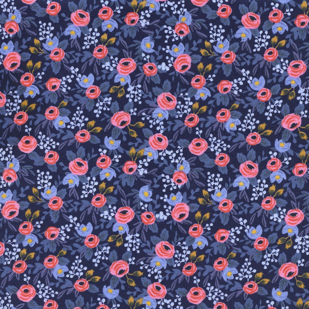 Rosa Navy Cotton Fabric Les Fleurs | Rifle Paper Co.