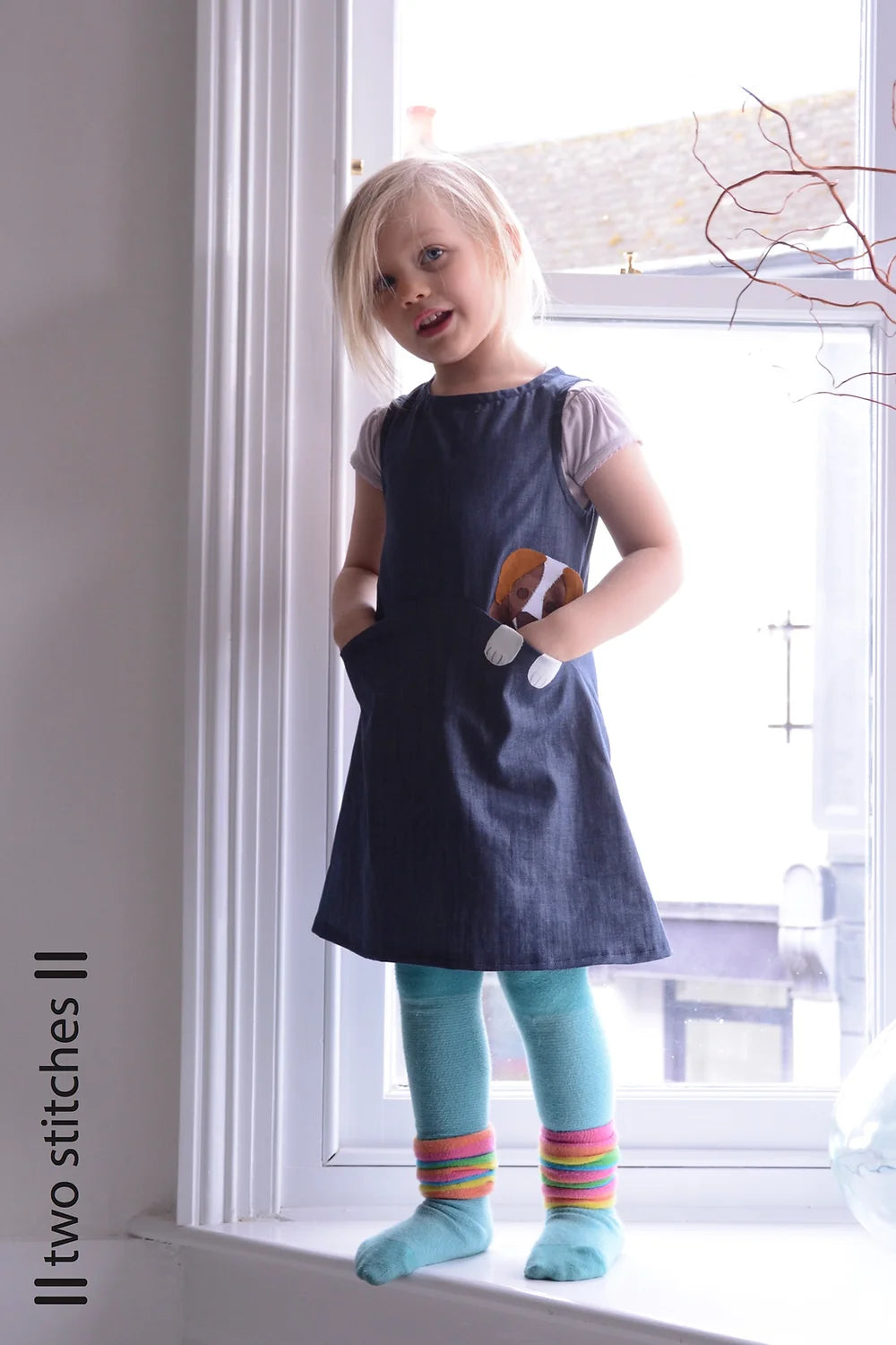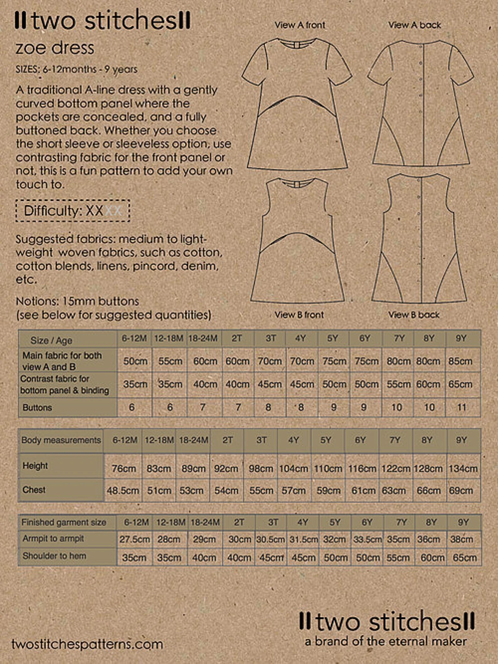 A traditional A-line dress with a gently curved bottom panel where the pockets are concealed, and a fully buttoned back. Whether you choose the short sleeved or sleeveless option, use contrasting fabric for the front panel or not, this is a fun pattern to add your own touch to! You will receive a printed instruction booklet, with full paper pattern templates. Detailed pictures, and step by step instructions on how to make your own Zoe dress