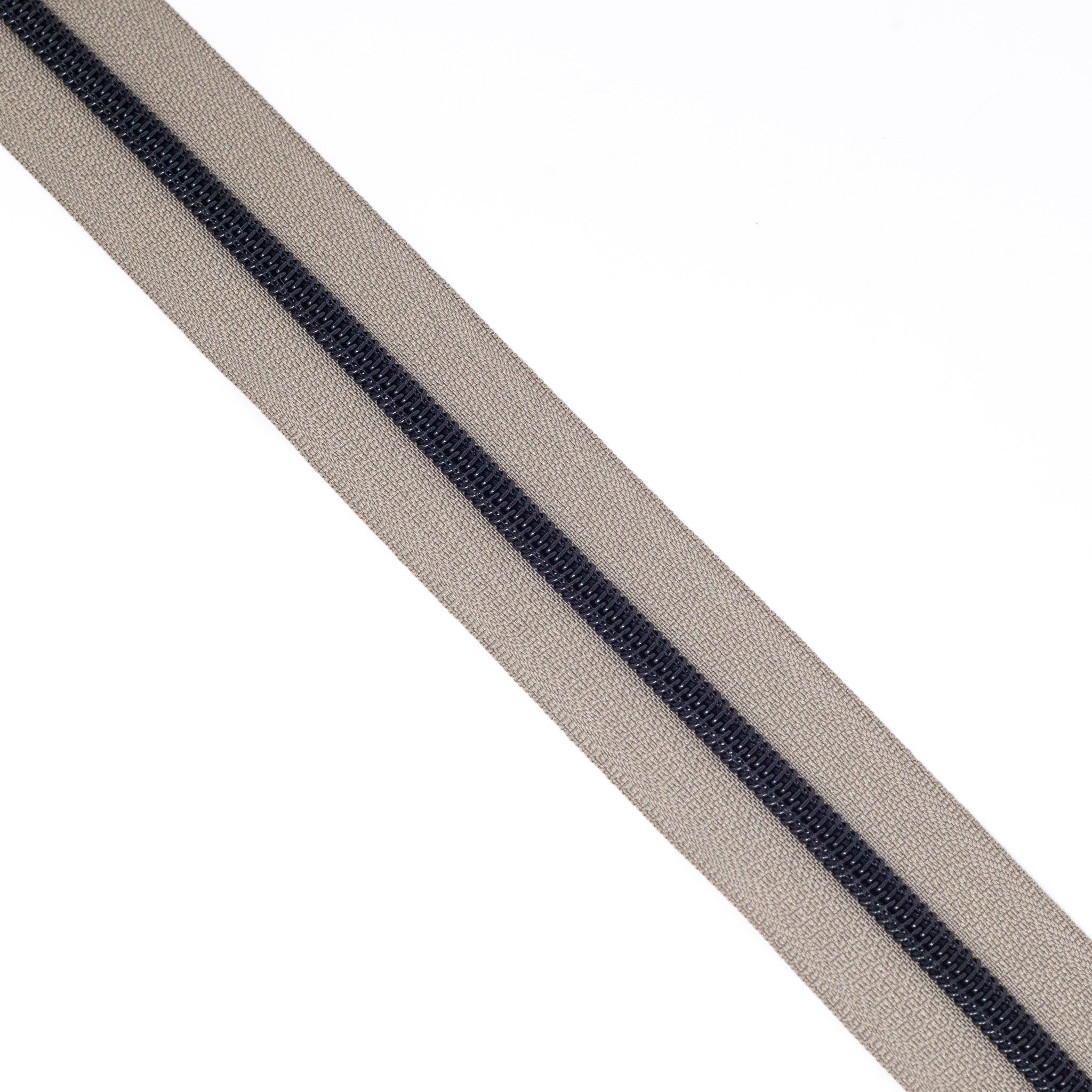 Mushroom size #5 black nylon coil zipper tape. Each quantity will be pre-cut to 3 metres in length. Multiple quantities of the same length will not be cut in 1 continuous piece. Our zipper tapes have the appearance of metal look teeth but are 100% nylon.