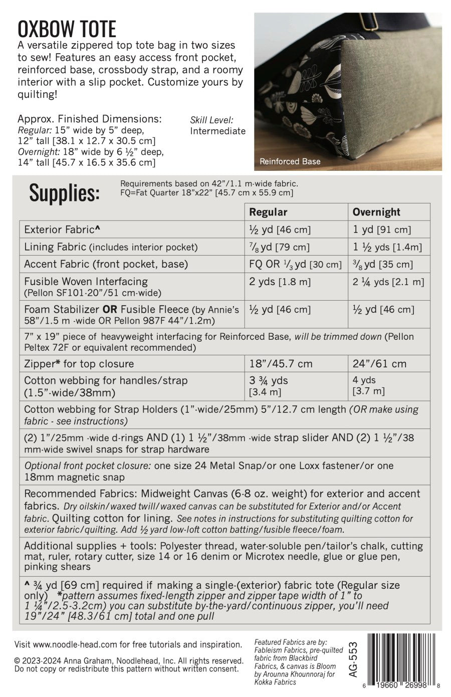 Oxbow Tote Paper Pattern | Noodlehead
