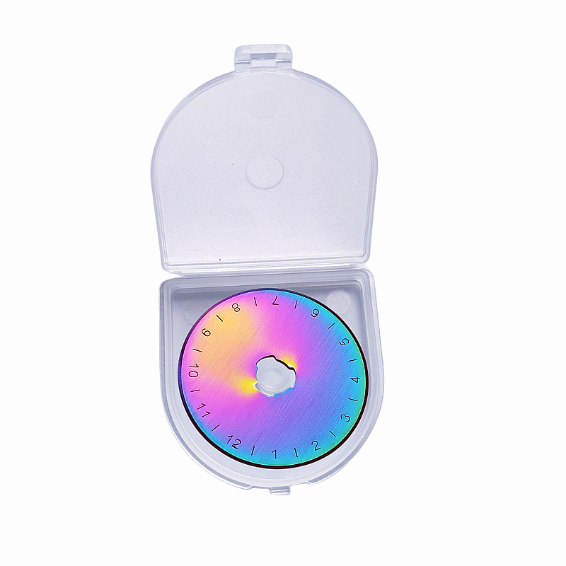 Premium quality pack of 5 rainbow straight rotary blades. Finely ground hardened Japanese steel for superior sharpness and a longer life. 3 blade sizes available to fit most 45mm, 28mm and 18mm rotary cutters. Versatile blade creates a perfectly straight cut and can be used on fabric, vinyl, leather and cork
