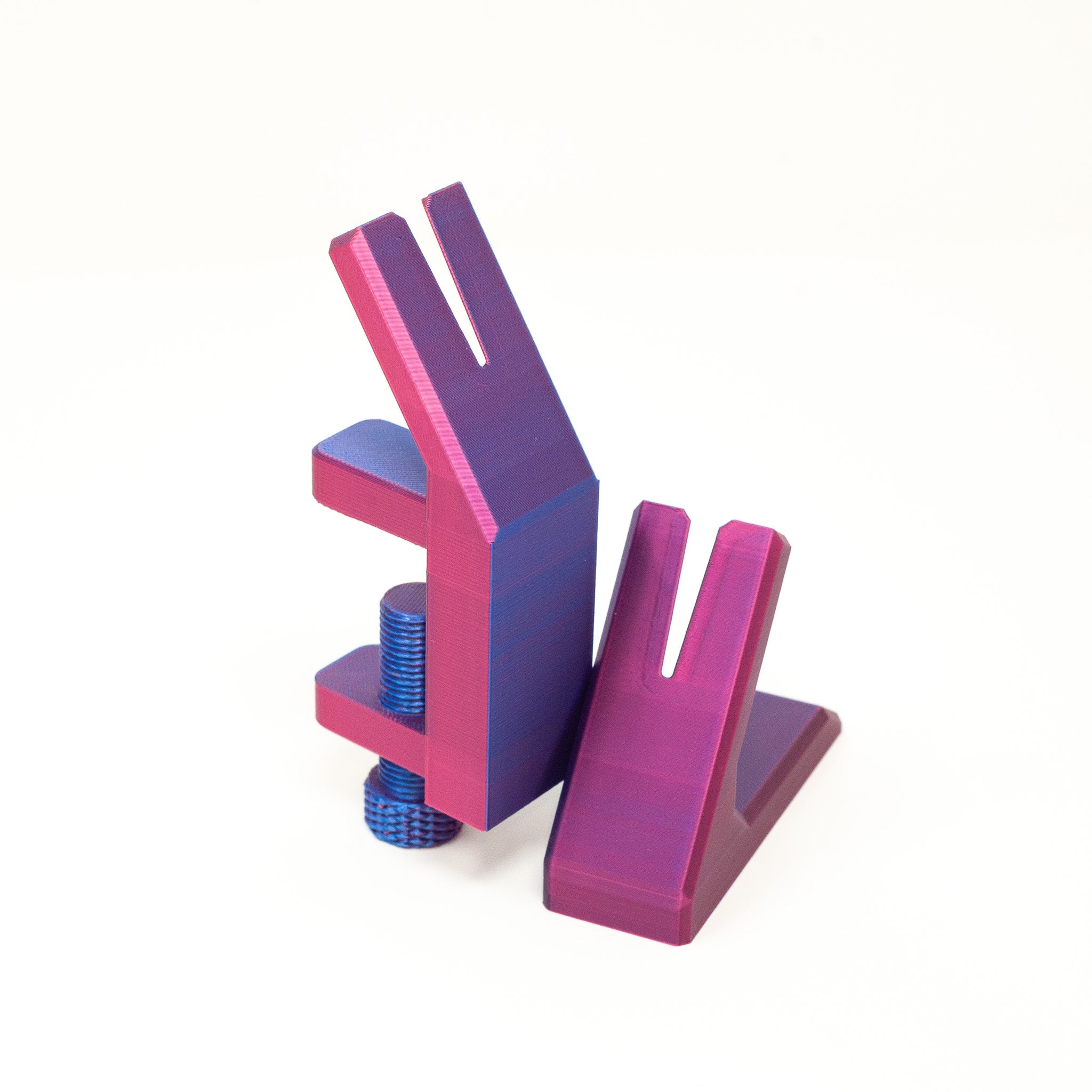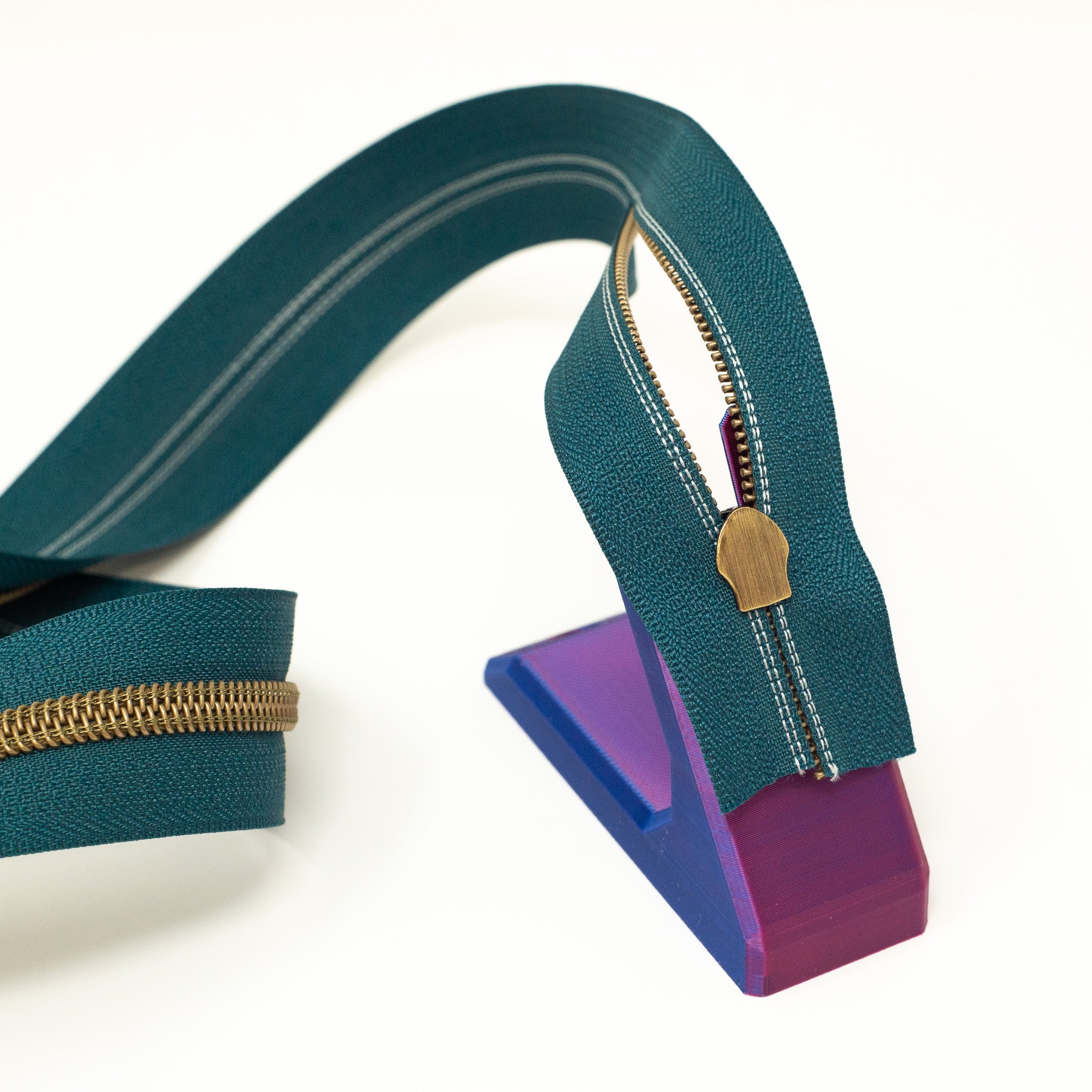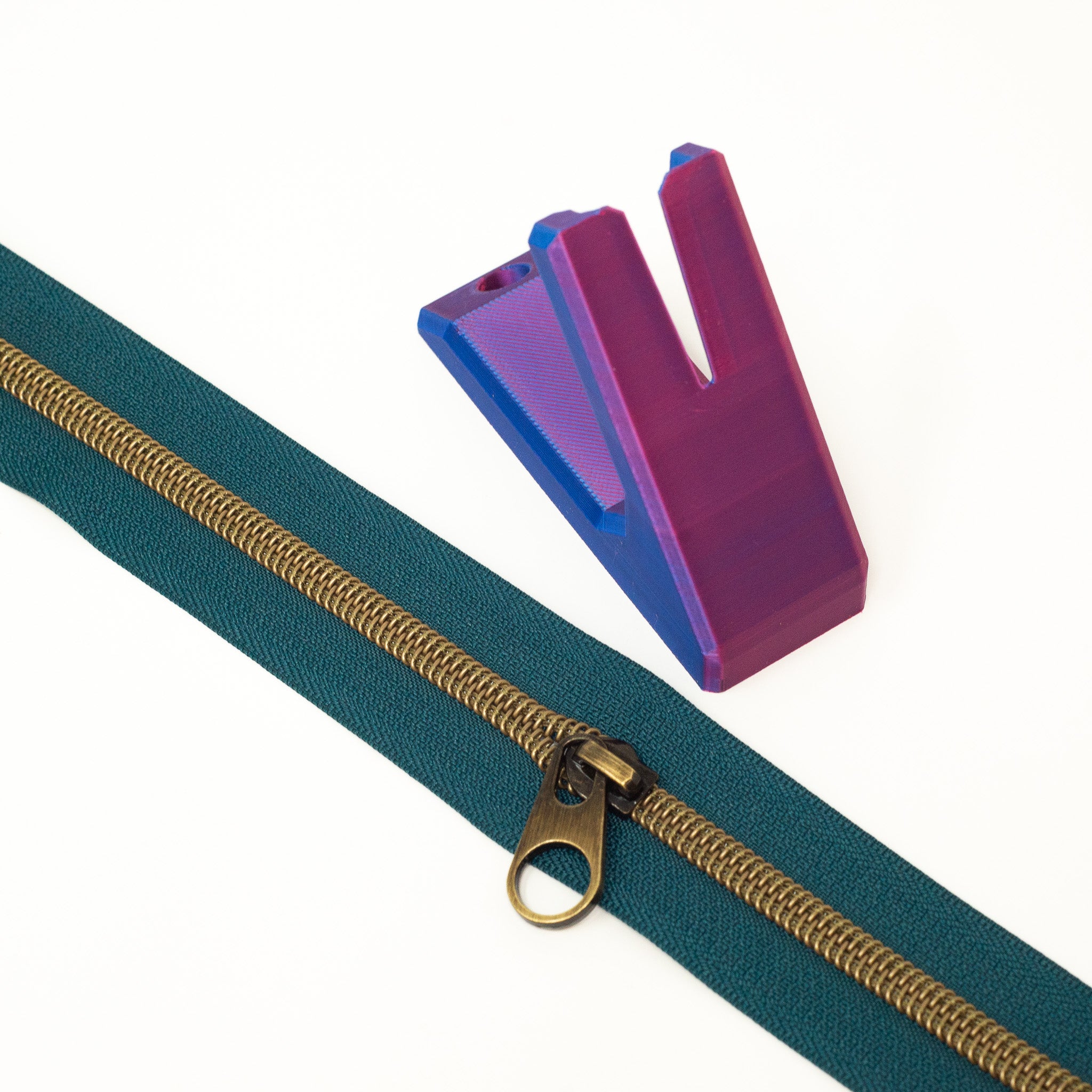 Struggle to add zipper pulls to zipper tape? This handy 3D printed zipper jig helps you easily add zip pulls to zipper tape. This genius little tool is the perfect addition to add to your sewing room. Never again will you struggle to add zip pulls onto your zip tape. Duo chrome blue/magenta colour. This 3D printed item is manufactured under the appropriate copyright licence. Zipper tape and pull not included. Check out the other jig shape we sell here